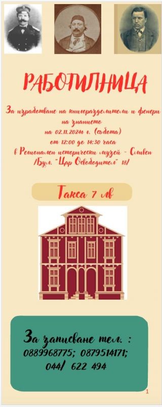 Ще Ви очакваме на 02 ноември 2024 г. /събота/ от 12:00 до 14:30 часа в сградата на Регионален исторически музей - Сливен /бул. "Цар Освободител" 18/