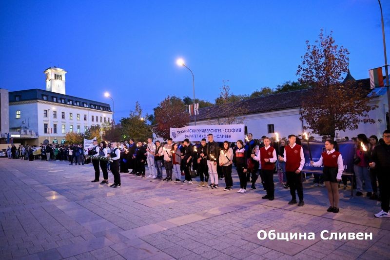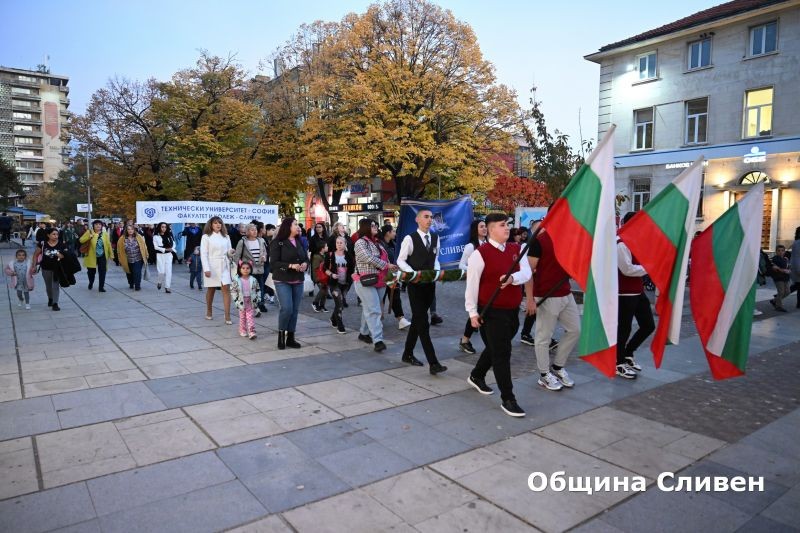 Традиционното факелно шествие в Сливен по повод Първи ноември – Деня на народните будители, беше кулминацията на днешния празник. Представители на местната власт и институциите в града, представителни групи от училищата, студенти и преподаватели от двата филиала към ТУ-София и Медицинския университет във Варна, десетки граждани и гости, се включиха в празничната колона. Тя тръгна от „Розова градина“, премина по бул. „Цар Освободител“ – Главната улица и приключи пред паметника на Хаджи Димитър и сливенските възрожденци. Там в знак на признателност бе поднесен гирлянд.
