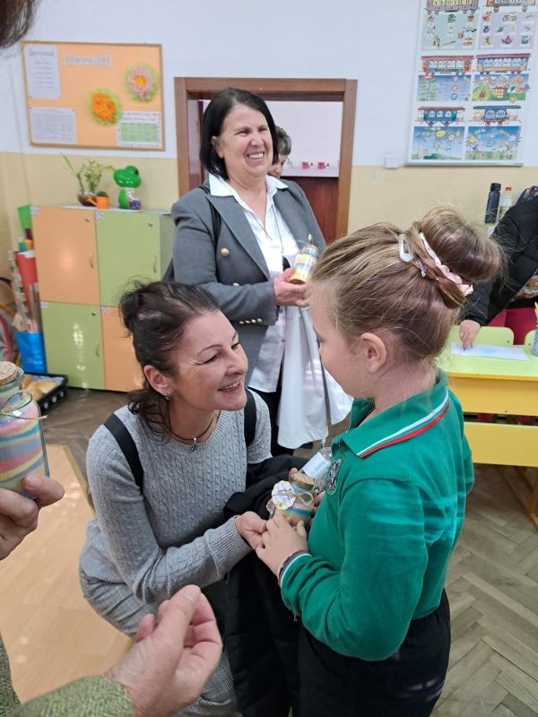Децата оцветяваха сол със цветни тебешири, превръщайки обикновения материал в ярки и красиви творения.