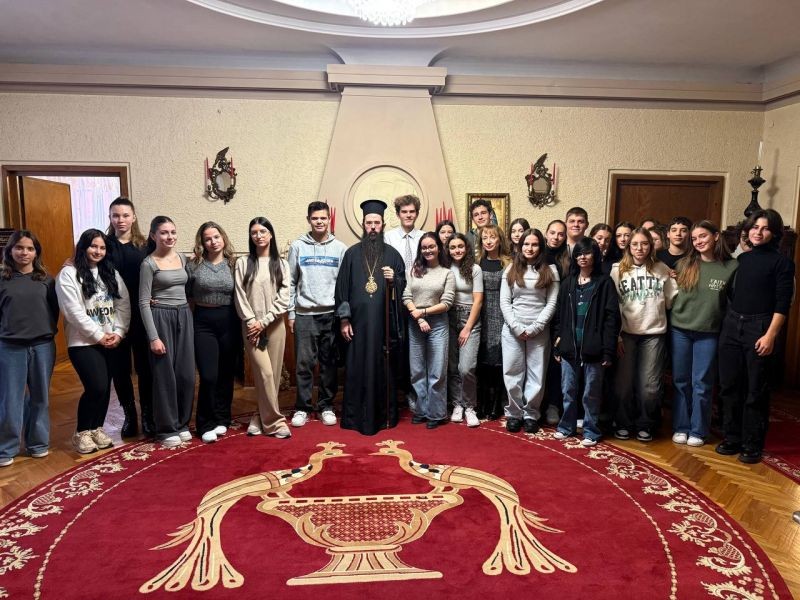 В официалния салон на Сливенската света митрополия се състоя среща на ученици от 9 клас, водени от класния си ръководител г-жа Биляна Стоянова, и Негово Високопреосвещенство Сливенския митрополит Арсений. Срещата премина в дух на събеседване и проявен интерес от страна на учениците за вярата и църквата.