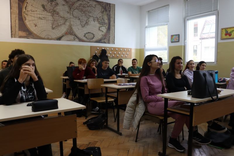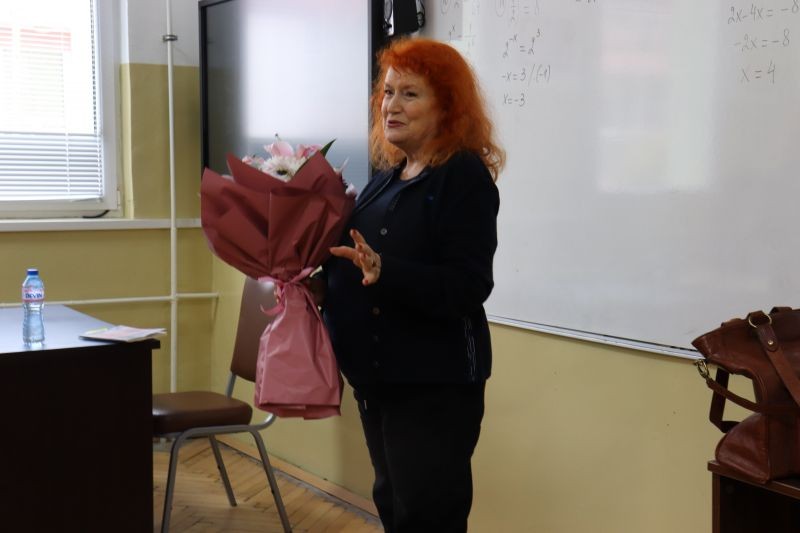 На 14 ноември в XIIа клас гостува поетесата Валентина Радинска – дългогодишен приятел на гимназията ни. Пред учениците тя сподели за вълнението, което изпитва всеки път, когато има възможност да се върне в родния Сливен – колко ѝ липсват сливенският вятър и Сините камъни и колко уютно и у дома се чувства, въпреки годините и местата, на които е живяла. На прага на живота извън училище, дванадесетокласниците имаха възможност да се потопят в стиховете от последната ѝ стихосбирка „Нека бъде любов!“ и да чуят отговора на Валентина Радинска на най-важния въпрос – за любовта; да съпреживеят нейната история и нейната любов с големия български режисьор Крикор Азарян. На финала на разговора Валентина Радинска пожела на младежите да бъдат, да не отлагат истинския живот „за след малко“, да го обичат и да му се наслаждават пълноценно и пълнокръвно.