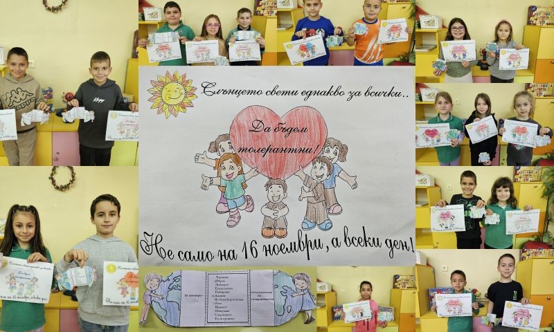 Всеки човек е личност, всеки човек е ценен! Негово право е да бъде уважаван, независимо от различията си. Зад тези думи застанаха децата от група за ЦОУД - 2. клас и отбелязаха Деня на толерантността. Многообразието в света ни показва колко е пъстър животът и колко много и различни начини има да изразим себе си и най-вече, че нищо не може да попречи на хората да бъдат приятели и да се уважават!