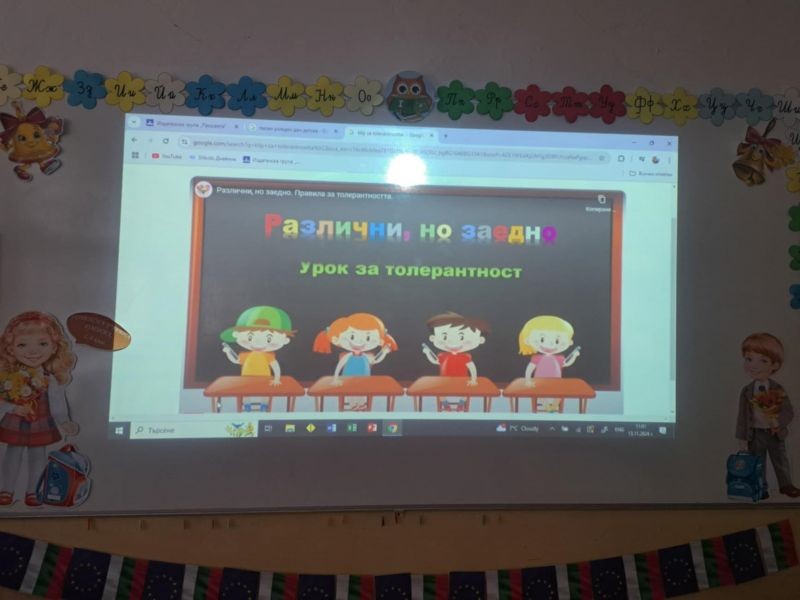 Денят на толерантността беше отбелязан с ентусиазъм и креативност от най-малките ученици в нашето училище. Първокласниците взеха участие в специална беседа, в която научиха за добротата и значението на думата "толерантност". Запознаха се с важността на тези ценности и как те допринасят за създаването на хармонична и уважителна учебна среда.