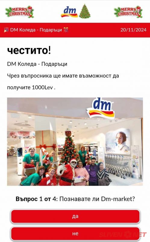 В студиото на „България сутрин“ Габриела Руменова предупреди, че отново е актуално създаването на платформи, в които уж брандове провеждат анкети за предоставяне на награди, а всъщност събират лични данни. Последовател на „Ние, потребителите“ изпратил сигнал по повод такъв случай. „Брандът обещава 1000 лв. награда, ако отговорят само на четири въпроса. Отдолу има над 200 коментара, които също са фалшиви, но подкрепящи тази инициатива: „Мислех си, че е шега“, „Мислех, че това няма да се случи, но подаръкът дойде при мен“, „Много съм щастлив, има ли още анкета, в които да се включа?“ и т.н.“ разказа още тя.