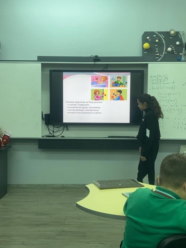Как да се предпазим и реагираме при токов удар ни запознаха Виктория Емилова и Шабан Шабанов от 6.а клас.