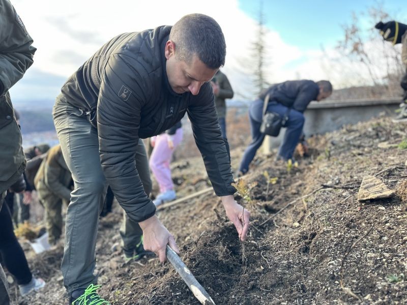 Въпреки силния вятър, много хора се включиха в акцията по залесяване на Бармук баир в Сливен