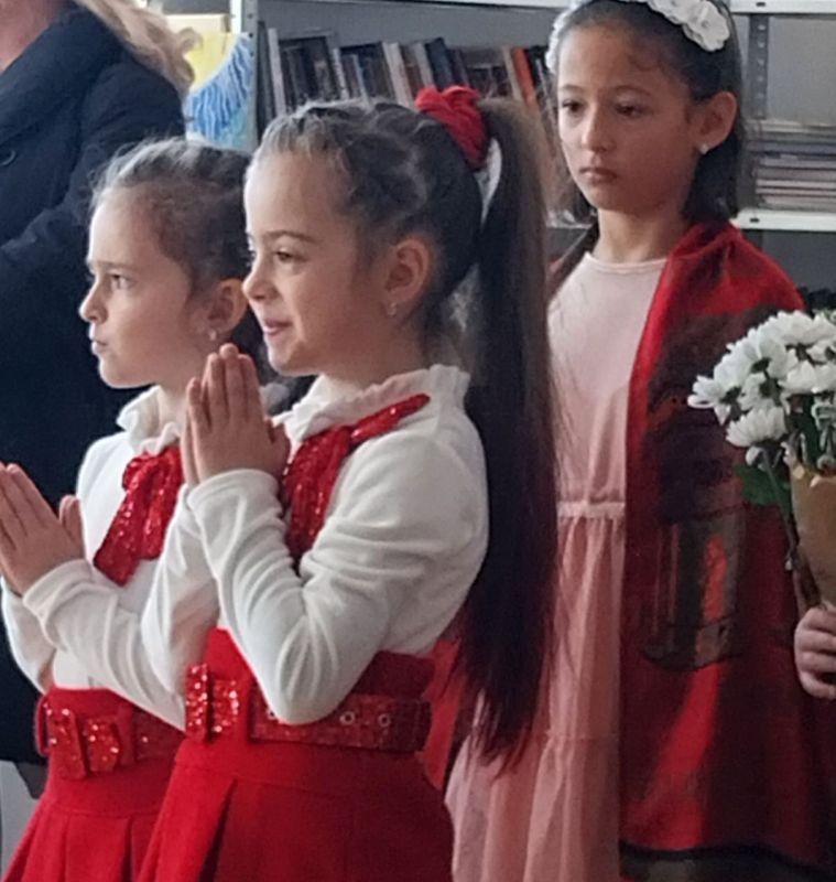 Сияна от Театрална школа "Детско царство" към ЦПЛР поздрави всички с песента "Дева Мария", братчето и сестричето Боян и Валентина Дженатови пък изрецитираха стиха "Дево свята", Йоан Данев от Неделното училище представи стих "Моето семейство", а гостенки с вокален педагог Мария Митева поздравиха всички с песента "Молитва".