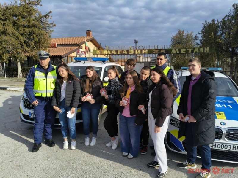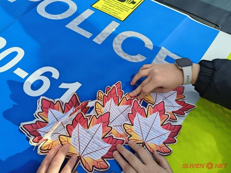 Сектор „Пътна полиция” и ученици от СУ "Константин Константинов" в град Сливен се включиха в кампанията „Послание на есенни листа”. Инициативата е на Националния дворец на децата и се провежда за поредна година в началото на зимния сезон. Тя има за цел да заостри вниманието на водачите на моторни превозни средства, да припомни, колко е важна да се спазват правилата и да бъдат толерантни към всички участници в движението. Децата пишат своите послания и ги закрепват към есенни листа. Днес деца от седми до единадесети клас в СУ „Константин Константинов” участваха в съвместна проверка на пътя, като всеки проверен шофьор получи лист с послание. „Карай внимателно!”, „ Слагай си предпазния колен! Пази се!”, „Спазвай пътните знаци!” са част от посланията и бяха придружени с апел да бъдат по-бдителни, по-отговорни и да пазят децата.