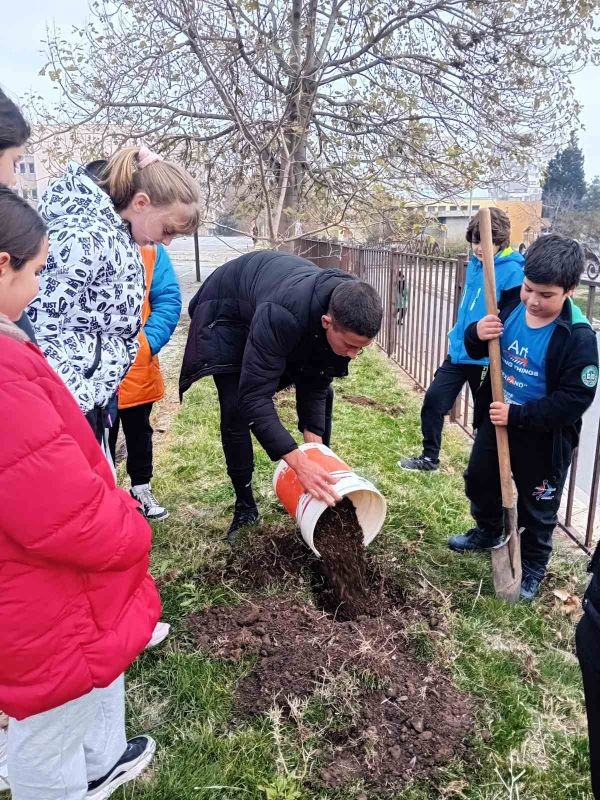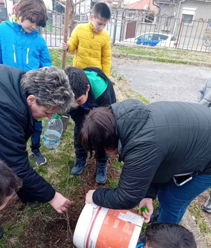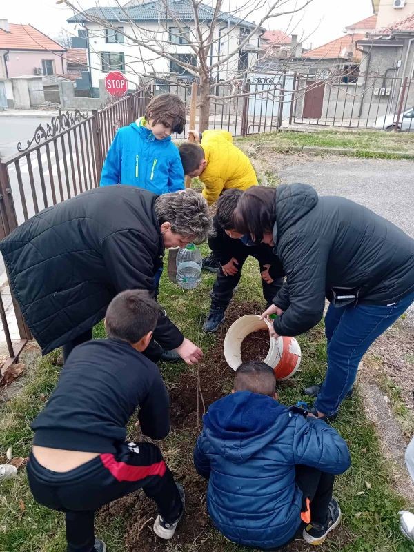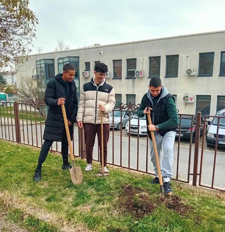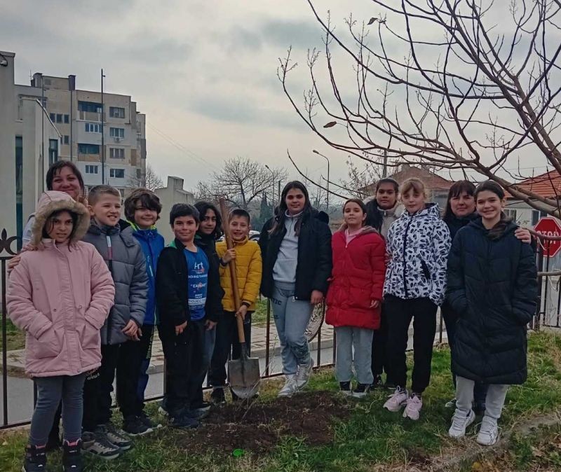 Ученици от 4. и 9. клас при СУ "Йордан Йовков" също се включиха в инициативата "Засаждаме бъдеще" на Гората.бг. Те засадиха люлякови храсти и дъбови дръвчета в училищния двор.
