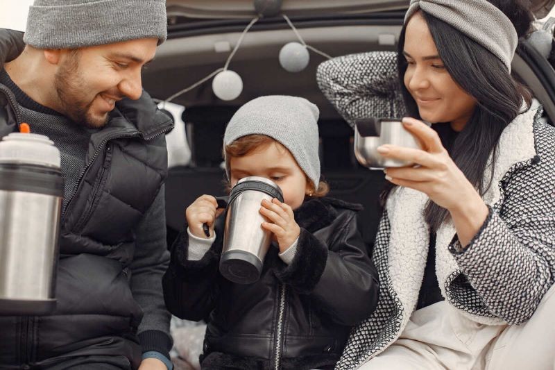За зимно пътуване с кемпер облечете бебето на пластове – така ще можете лесно да регулирате температурата според условията. Задължително носете шапка и топли ръкавици, тъй като малките деца бързо губят топлина през главата и ръцете.