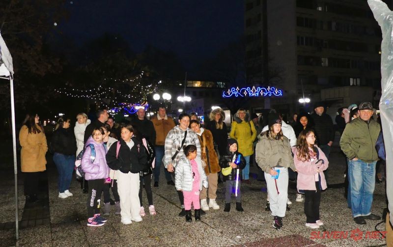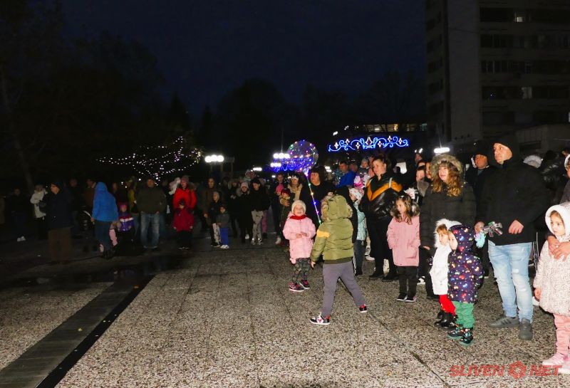 На 2 декември площад „Свобода“ в Нова Загора се превърна в сцена на коледно вълшебство. Въпреки дъждовното време, десетки деца и родители се събраха, за да се насладят на традиционното запалване на светлините на коледната елха.