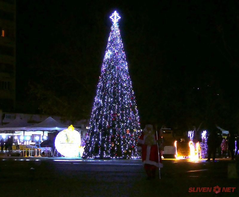 Коледната елха в Нова Загора заблестя с магическа светлина