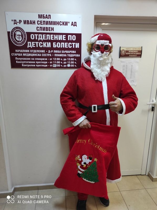 Дядо Коледа посети пациентите от Детското отделение в МБАЛ "Д-р Иван Селимински"-Сливен. Той се срещна с децата и медиците в отделението. Подари играчки за празничната украса, заедно със студенти от специалност "медицински сестри" на филиала в Сливен към МУ-Варна "Проф. д-р П. Стоянов". Екипът на отделението и малките пациенти благодарят за вниманието и подарените прекрасни моменти.