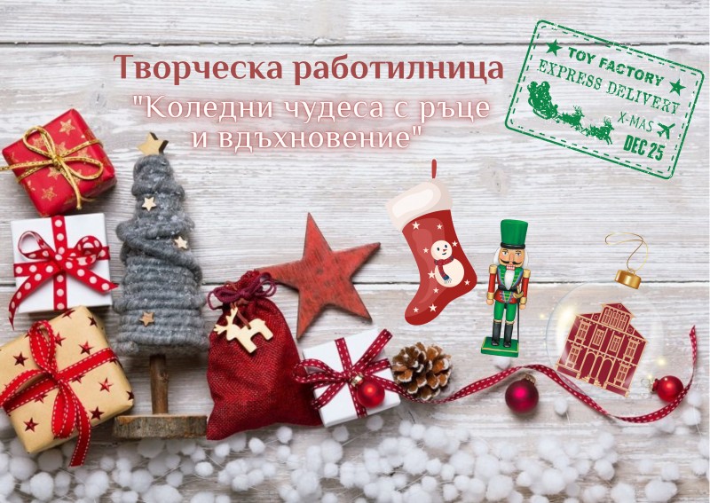 На 14 декември 2024 г. от 10:00 до 12:30 ч. и от 14:00 до 16:30 ч. в музея ще се проведе творческа работилница "Коледни чудеса с ръце и вдъхновение", по време на която ще можете да се потопите в празничната атмосфера и да изработите уникални коледни играчки и картички с помощта на различни техники и материали.