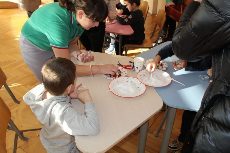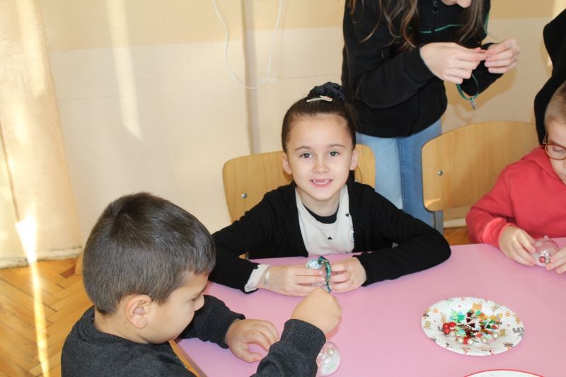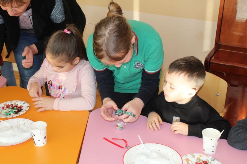Днес на гости ни бяха децата от ДГ "Вержин и Хаик Папазян". В организирана Коледна работилничка, те имаха възможност да изработят коледни топки, с които да украсят своите елхи. Малчуганите се включиха с голямо желание и ентусиазъм, като използваха различни материали, за да създадат уникални и красиви украшения.