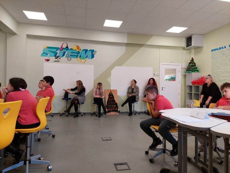 На 18.12.2024г. в STEM кабинета се проведе открит урок на тема „Коледна елха“ с учениците от група ЦОУД от 4. “б“ клас. На събитието присъстваха г-жа Величка Христова – директор на училището, г-жа Марияна Иванова – зам. директор на училището и много учители.