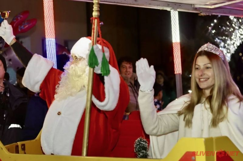 Кулминацията на вечерта бе пристигането на Дядо Коледа и Снежанка, които този път изненадаха всички, пристигайки на площада с пъстро коледно влакче. Белобрадият старец раздаде подаръци на 600 деца от общината, а най-малките с радост се снимаха с него, запечатвайки този специален момент.