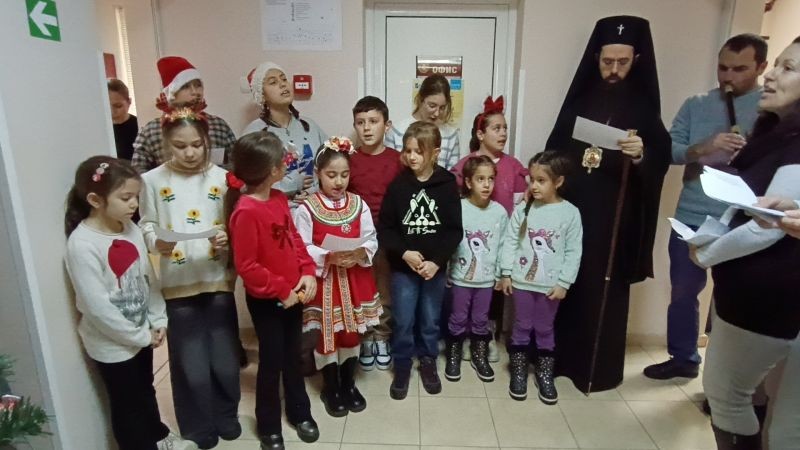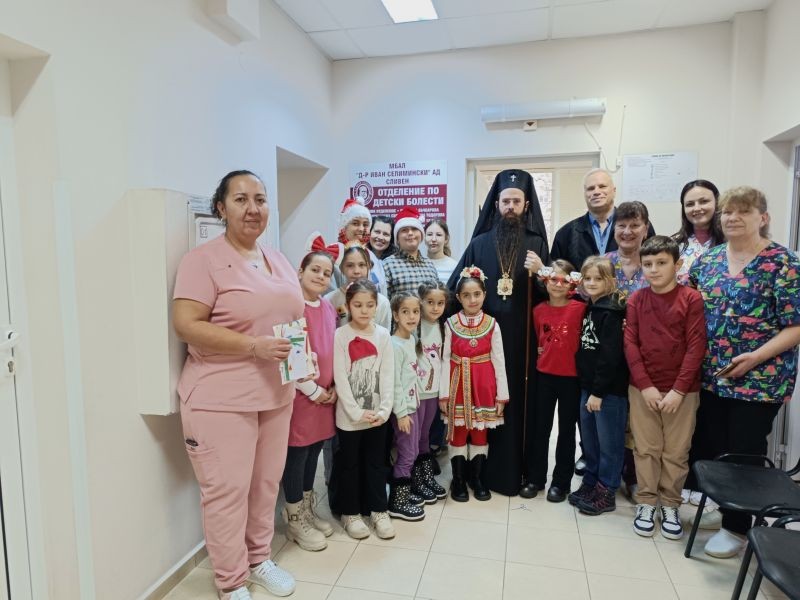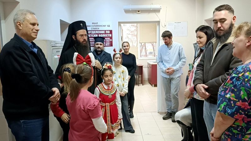 Заедно с владиката в отделението дойдоха и деца от православните неделни училища в Сливен. Те изпълниха рождественски и коледни песни за медиците, болните пациенти и техните родители.