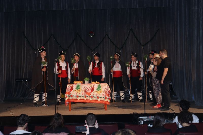 „Операция Коледен дух“ бе заглавието на представлението, като за сценария, репетициите, костюмите се бяха погрижили учениците от XII клас. Участие взеха учениците от VIII до XII клас, вокално-инструментална група „Монолог“, китайската ни доброволка Рита и мажоретките ни. Коледарската група, съставена от ученици от XII клас, пожела здраве и благоденствие на всички присъстващи в залата. Почти на самия финал вълнуваща покана към класната си ръководителка отправиха учениците от XIIб клас.