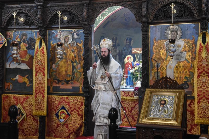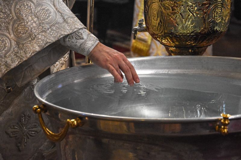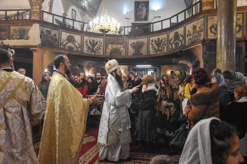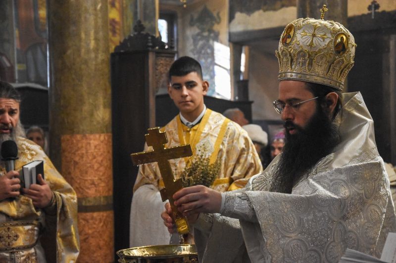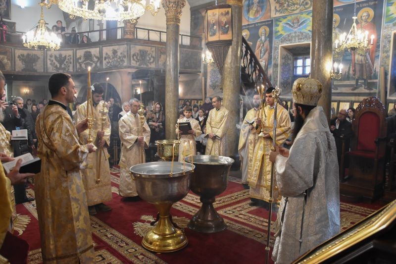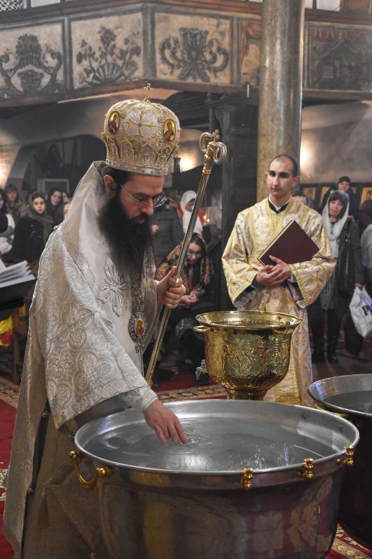 Архиереят освети кръстообразно всеки от приготвените купели, поставени в центъра на храма, и поръси множеството християни, дошли да почетат светото Богоявление и да отнесат с радост от богоявленската вода в домовете си.