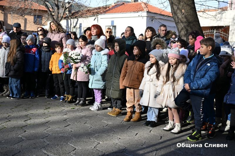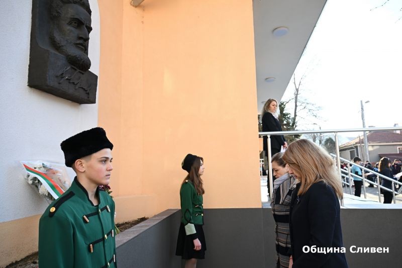 Венци и цветя пред барелефа на Ботев поднесоха заместник-кметът Пепа Чиликова, председателят на Постоянната комисия по образованието към Общинския съвет Лидия Димитрова, директорът на училището Денко Делчев, ученици и представители на народните читалища в Сливен „Христо Ботев 1897“ и „Хаджи Димитър 1937“, граждани.