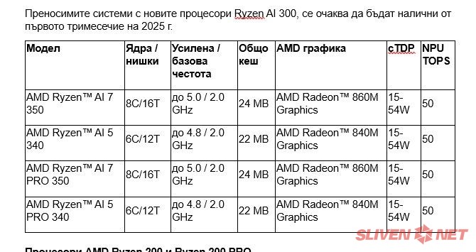 Преносимите системи с новите процесори Ryzen AI 300, се очаква да бъдат налични от първото тримесечие на 2025 г.