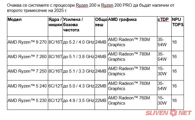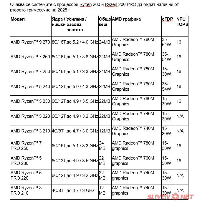 Очаква се системите с процесори Ryzen 200 и Ryzen 200 PRO да бъдат налични от второто тримесечие на 2025 г.