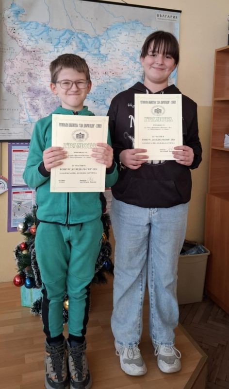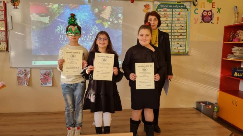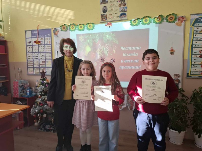 Ученици от СУ "Йордан Йовков" бяха наградени за своето участие в конкурса за коледна картичка и оригинално коледно пожелание "Коледна магия“ – 2024, организиран от Регионална библиотека "Сава Доброплодни" - Сливен.