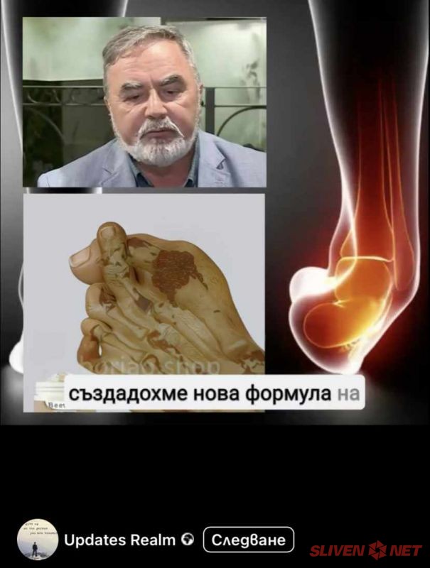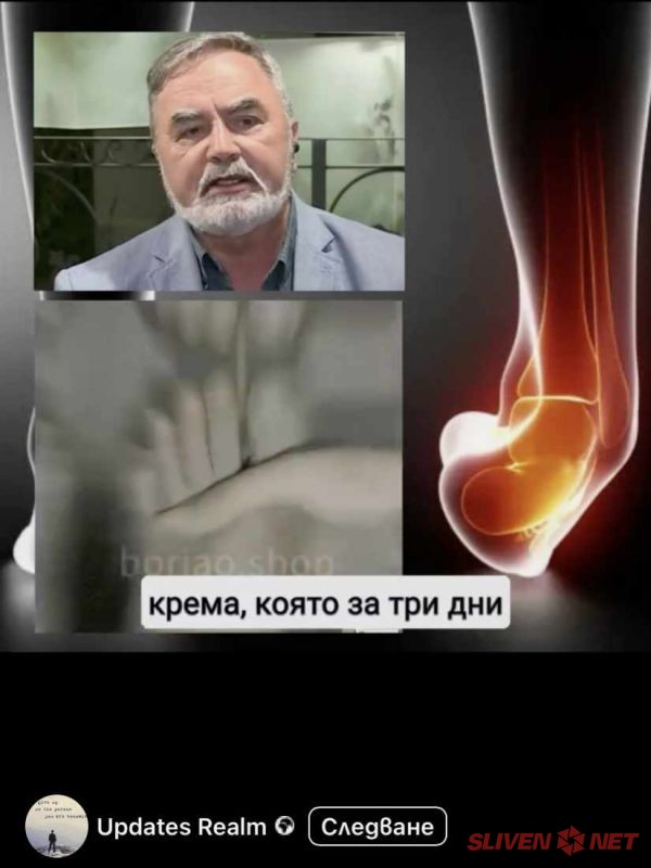 „Създадохме нова формула на крема, която за 3 дни напълно премахва болката и започва да възстановява увредената става отвътре. Нанасяйте този крем само веднъж на ден, както е указано в инструкциите и завинаги ще забравите за артрит, остеоартрит, остра болка, скованост и отоци. Счупихме всички рекорди по продажби, а вече над 100 000 доволни клиенти от България оставиха своите отзиви. Можете да закупите този крем и за вашите родители или близки. Той ще помогне да се избавите завинаги от болките в гърба, шията, коленете и други проблемни зони без операции, таблетки и скъпи масажи. Натиснете, научете повече и ще се изненадате колко лесно, безопасно и бързо е. И най-важното – не е скъпо. Всеки може да си позволи този продукт. Ако не вярвате в нашия метод на лечение, тогава продължавайте да страдате. Скъпи приятели, не се опитвам да ви продам нещо, просто създадох най-ефективния метод за лечение. Решението дали да го използвате или не остава на вас. В крайна сметка вие сте тези, които страдат от болка, а аз вече излекувах себе си.“