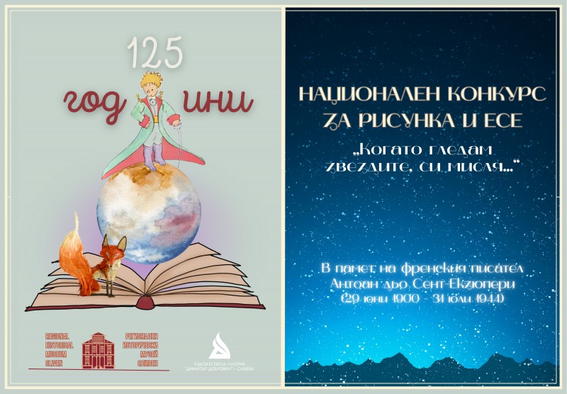 В желанието си отново да "предизвикаме" децата, тази година двете институции обявяваме Национален конкурс за рисунка и есе в памет на френския писател Антоан дьо Сент-Екзюпери. На 29 юни 2025 г. се навършват 125 години от неговото рождение и 82 години от първото издание на най-известната му повест „Малкият принц“, в която са втъкани неговите възгледи по отношение на изконни човешки ценности като щастието и свободата, богатството и съвършенството. Всъщност, с всеки следващ прочит на така увлекателно предствените случки в книгата, ние успяваме да преосмислим разбиранията си за това какво е самотата, например, за връзката между грижата и отговорността, която поемаме, когато обичаме някого или нещо. Дообогатяваме представите си за сложността, странността и смисъла на живота като цяло, а покрай мимолетността и уязвимостта на розата, която Малкият принц изоставя на своята планета, в нас се пробужда усещането за истински ценното и непреходното. Траен отпечатък в съзнанието ни оставя споделеното от малкия принц: „Ако обичаш едно цвете, което съществува само в един екземпляр сред милиони и милиони звезди, това ти стига, за да си щастлив, когато гледаш звездите.“