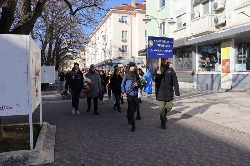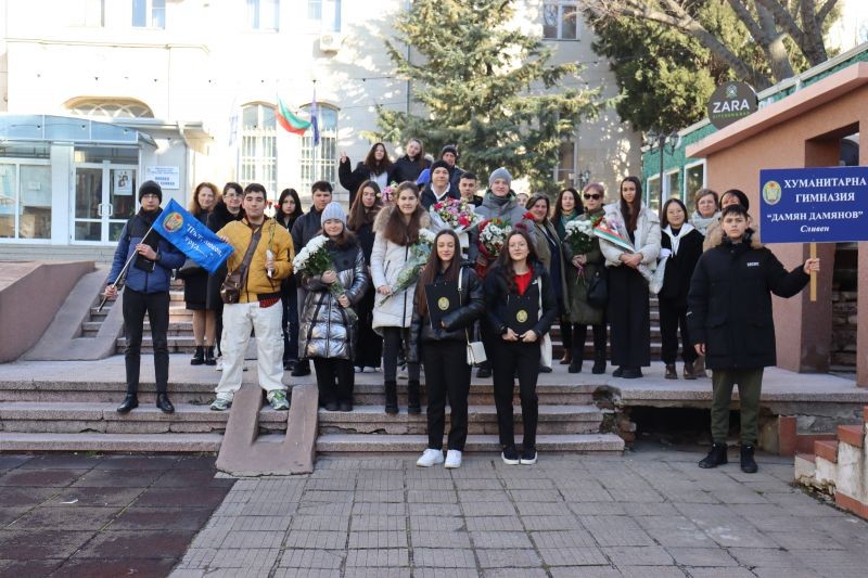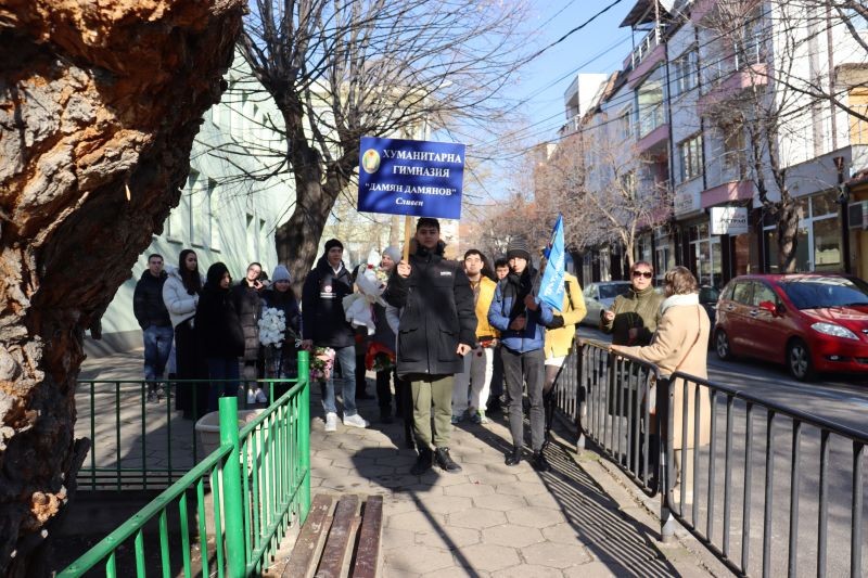 Преди 90 години, на 18 януари, е роден Дамян Дамянов. Днес Хуманитарната гимназия в града ни, носеща името му, отбеляза празника с поднасяне на цветя пред паметната плоча - пред дома, където поетът е живял от 1935 г. до 1953 г., когато се премества в София. С голямо вълнение и с пожелания да пазят жив духа на Дамян Дамянов, като четат и помнят стиховете му, към присъстващите се обърна Надежда Захариева и първа остави цвете.