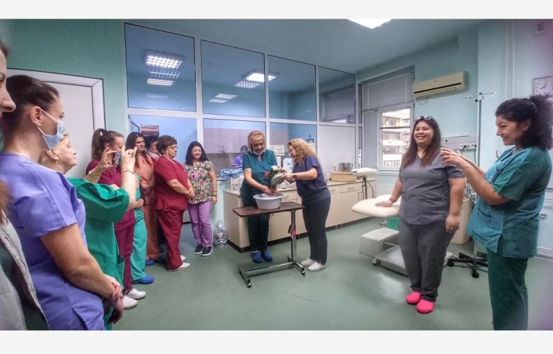 Традиционният ритуал по повод 21 януари - Бабинден и Ден на родилната помощ, беше изпълнен в Отделението по акушерство и гинекология в МБАЛ “Д-р Иван Селимински”-Сливен. Акушерката Ваня Димитрова изми ръцете най-напред на началника на отделението д-р Диана Гугова, а след това и на останалите лекари.