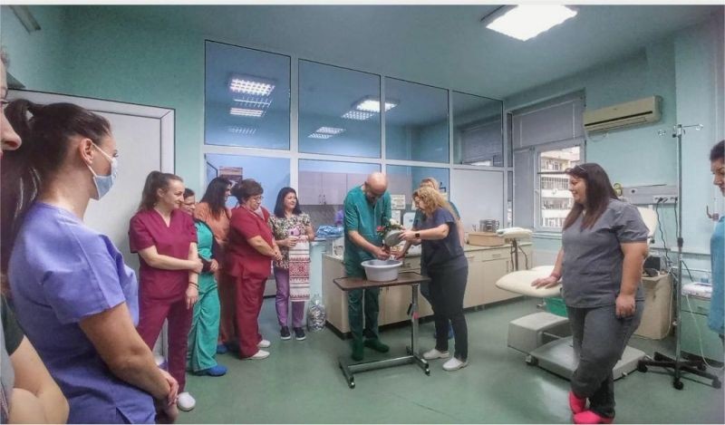 Традиционният ритуал по повод 21 януари - Бабинден и Ден на родилната помощ, беше изпълнен в Отделението по акушерство и гинекология в МБАЛ “Д-р Иван Селимински”-Сливен. Акушерката Ваня Димитрова изми ръцете най-напред на началника на отделението д-р Диана Гугова, а след това и на останалите лекари.