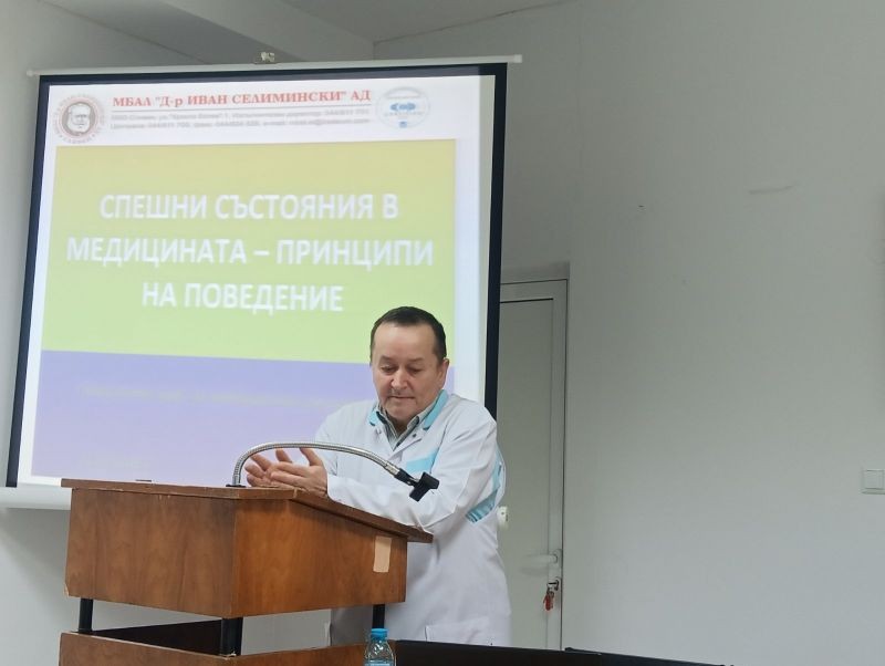 Курс за продължаващо обучение на професионалистите по здравни грижи на тема „Спешни състояния в медицината. Принципи на поведение” беше проведен в МБАЛ „Д-р Иван Селимински-Сливен”. Лектор на сесията беше началникът на Отделението по спешна медицина към болницата д-р Тодор Суванков. В обучението взеха участие 54 професионалисти по здравни грижи.
