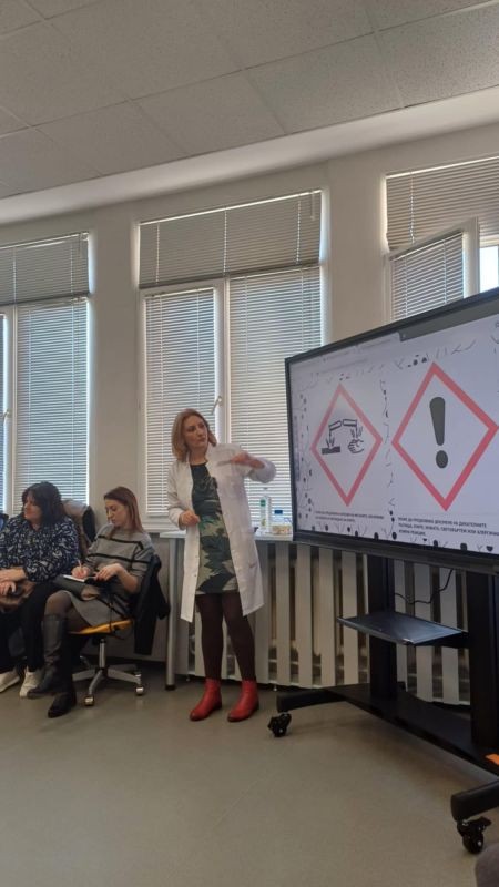 Темата на урока бе: „Изследване на свойства на солната киселина и откриване на хлориди“, с цел споделяне на добри практики за прилагане на междупредметни връзки и иновативни подходи в обучението.