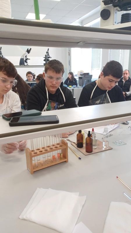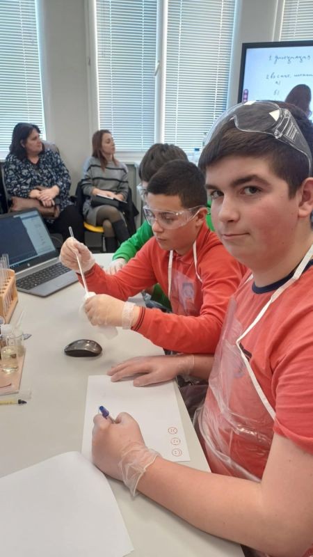 Лабораторният урок беше извършен по всички правила за безопасна работа. Учениците работиха в групи по 5 експериментални задачи. Те показаха знания и умения за извършване на химичен експеримент, умения за попълване на протокол, дигитална компетентност. Представиха се достойно, показаха голям интерес и желание за работа. Пожелаваме им бъдещи успехи!