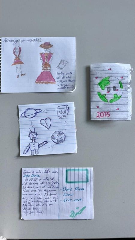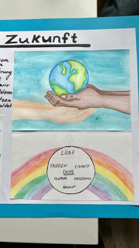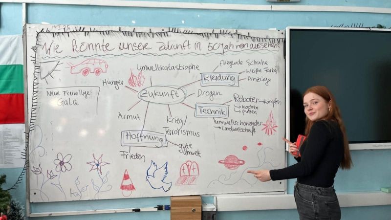 В рамките на проектната седмица всички ученици от немските паралелки имаха възможността, да разработят свои идеи по темата „Как си представяме бъдещето след 50 години?“ Учениците работиха по проектните задачи в творчески ателиета, като всички успяха да покажат своята креативност в екип и пресъздадоха идеите си за бъдещето на колажи и плакати. Освен това учениците разучиха популярна немска песен, която разкрива напълно предимствата и недостатъците от бързото и динамично развитие на света като цяло. Като заключителен продукт двете доброволки записаха изпълнението на немската песен от наши гимназисти, както и кратко видео с проектните разработки на всички класове!