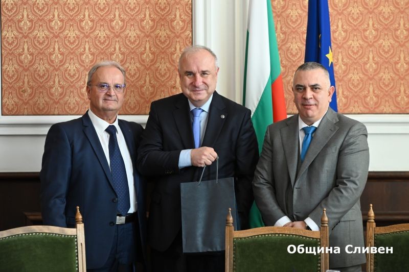 В заседателната зала бяха още председателят на Общински съвет – Сливен Димитър Митев и заместник-кметът по икономическото развитие инж. Стоян Марков.