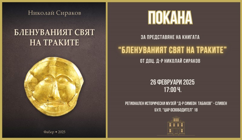 Заповядайте на 26 февруари 2025 г., сряда, от 17:00 ч. на представянето на монографията "Бленуваният свят на траките" с автор доц. д-р Николай Сираков.