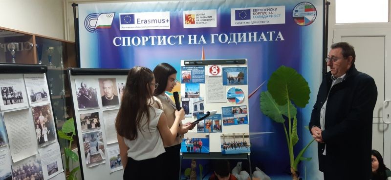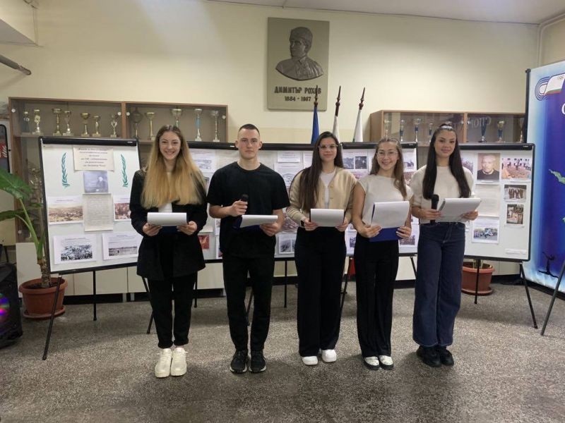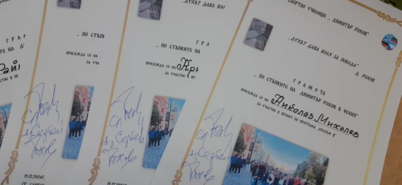 Представяме инициативата "По стъпките на Д. Рохов в Прага", реализирана по училищния ни проект по Програма "Еразъм +". Общата изложба откри Лъчезар Дойчев, директор на училището, а сред първите посетители бе д-р Сергей Рохов, внук на Д. Рохов. С юбилейната изложба за живота и делото на Димитър Рохов започнаха тържествата по повод 40 години от основаването на Спортното училище в Сливен. Учениците от клуб "Млади възрожденци" с ръководител Стефка Атанасова, учителка по история, представиха живота и делото на нашия патрон във факти и дела. Участниците в проекта представиха инициативата "По стъпките на Димитър Рохов в Прага" и получиха мил спомен с автограф от д-р Рохов. По-малките ученици слушаха с интерес за обучението и спортната дейност на Д. Рохов в чешката столица.