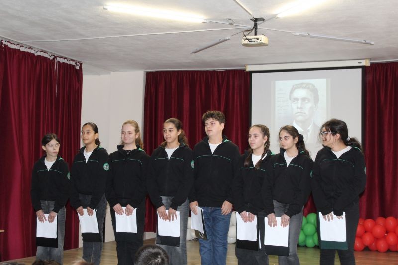Силни думи, патриотичен дух и преклонение пред подвига на Апостола изпълниха залата на нашето училище по време на въздействащия рецитал, посветен на Васил Левски. Учениците Ева, Васко, Неделина, Божидара, Кристияна, Вили, Виктория, Елизабет с вдъхновение пресъздадоха безсмъртните му завети.