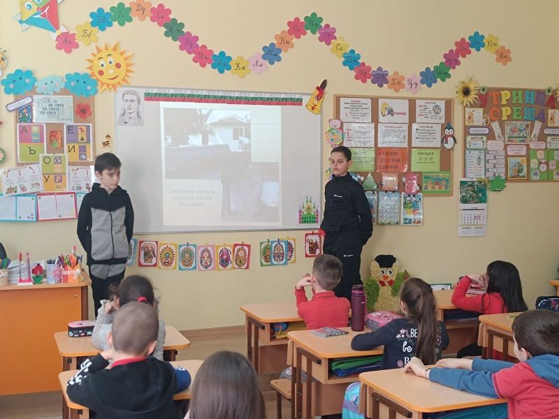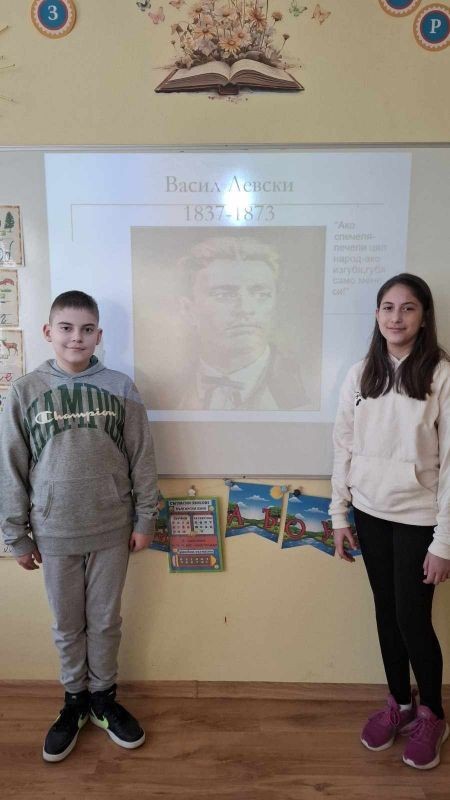 През изминалата седмица в Педагогическа практика „Утринна среща“ първокласниците си припомниха за живота и делото на най-великия българин на всички времена – Васил Левски. Повод за това беше и наближаващата годишнина от обесването на Апостола на свободата. В утринните срещи децата споделиха, че ще запомнят Левски с неговия лъвски скок, както и с това, че е бил знаменосец в четата на Хаджи Димитър, и най-вече с това, че е дал живота си, за да бъде България свободна. Гости на малките ученици бяха петокласници, които им представиха презентации за Апостола.