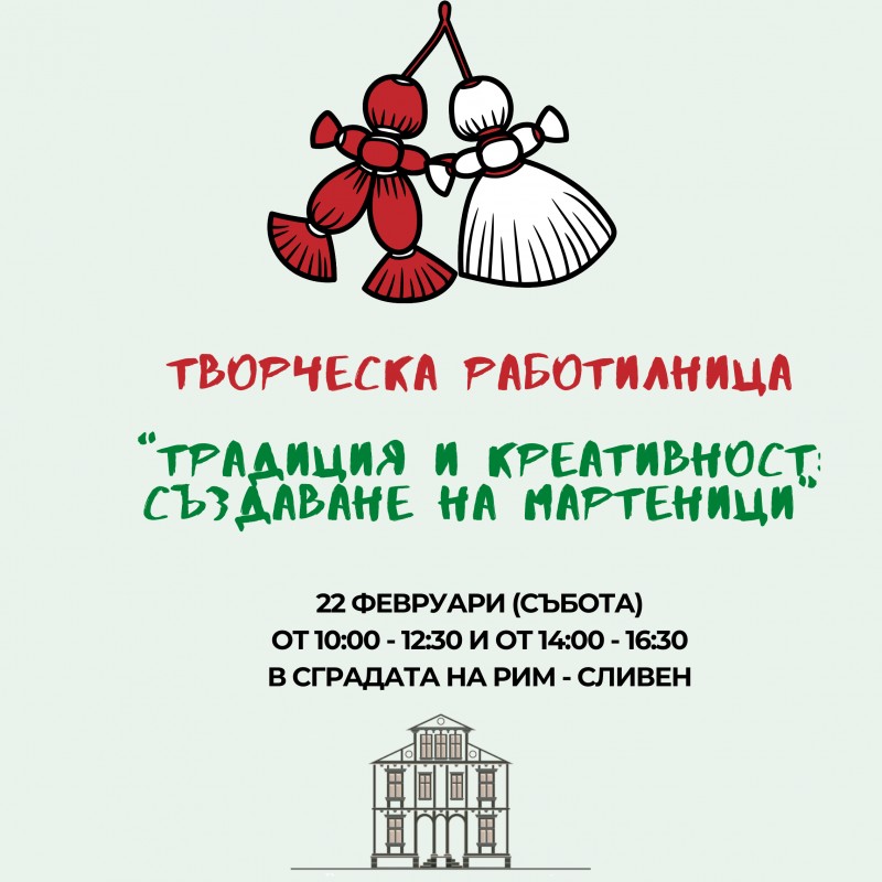 На 22 февруари 2025 г., събота, в музея ще се проведе творческа работилница "Традиция и креативност: създаване на мартеници". Децата ще се потопят в света на мартениците, като ще научат за тяхната история и създадат своите уникални украшения, съчетаващи традиция и творчество.
