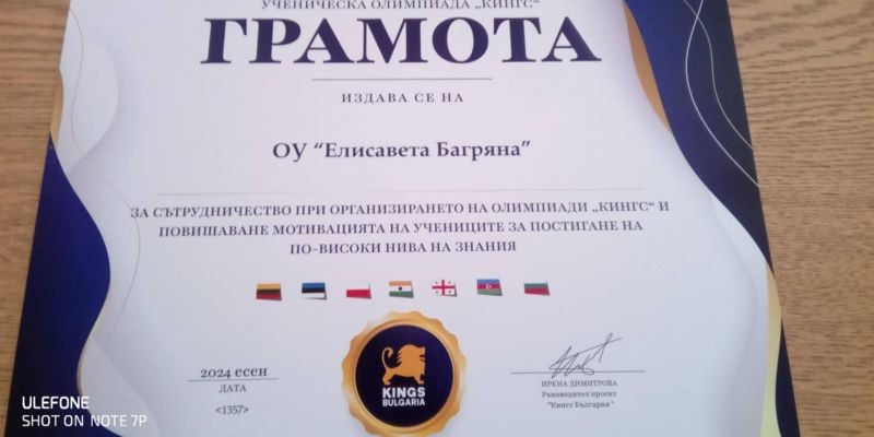 На състоялата се международна дистанционна ученическа олимпиада “КИНГС“ Максим Красимиров от II "г" клас беше награден с диплома за постигнати успехи в състезанията по английски език и математика.