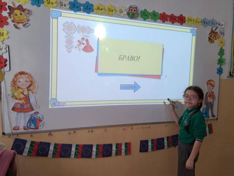 Децата с интерес изгледаха тематична презентация, която ги запозна с историята и символиката на празника. Чрез красиви изображения и достъпен текст, учениците научиха за значението на червено-белите конци и традицията да се закичваме с мартеници за здраве и благополучие.