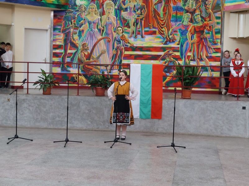 Празничен концерт по случай националния празник на България - 3 март, се състоя във форума на ОУ "Елисавета Багряна". Събитието бе наблюдавано с интерес от директора на училището ни г-жа Величка Христова и заместник директорите Марияна Иванова и Радослава Георгиева, от ученици, учители, родители и гости.