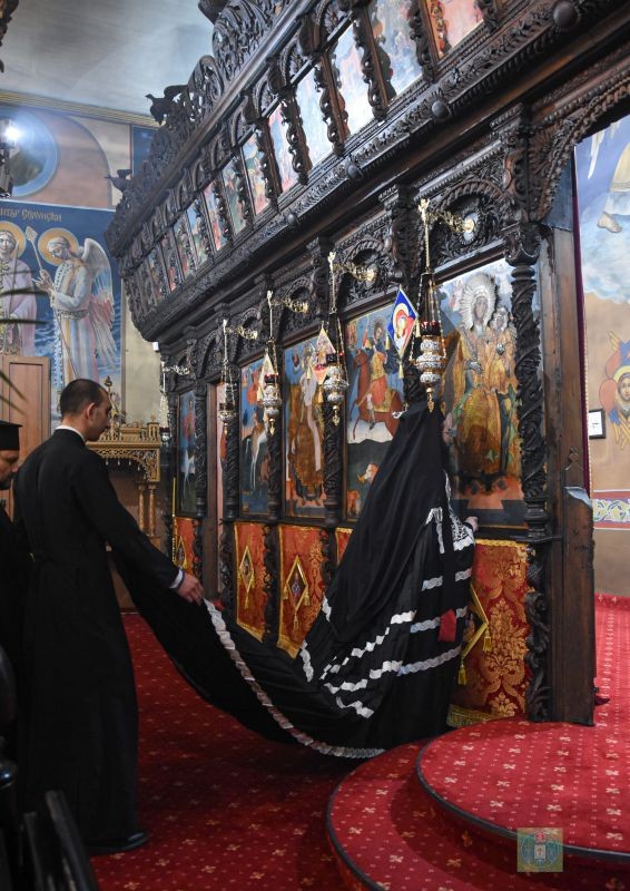 По време на изпяването на първата самогласна стиховна стихира цветното храмово и свещеническо облачение бе подменено с черно. Така Църквата и чрез нашите сетива ни напомня за настъпилия Велик пост, който е време за покаяние.