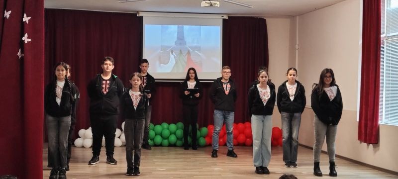 В навечерието на 3 март се проведе тържественият рецитал „С България в сърцето“, организиран от участниците в групите за „Занимания по интереси – „Аз и Сцената“ и „Творческа работилница“ с ръководители Ивелина Ангелова и Анна Енчева.
