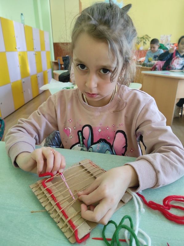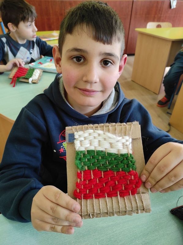 3 март е една от най-важните дати в историята на България- Деня на Освобождението. Учениците от ЦОУД 1 и 2 клас, заедно с г-жа Марияна Добрева почетоха празника, като се пренесоха в духа на българските традиции. Всички се превърнаха в истински занаятчии, потънали в пленителния свят на традиционните ръчни занаяти, които не са само изкуство, но и символ на устойчивост и идентичност. Фокусът бе насочен към тъкачеството, като един от най-важните елементи на нашето културно наследство , а именно тъкането на килими и други текстилни изделия. С помощта на ръчно направени станчета всеки един ученик с огромно вълнение и гордост изтъка свое българско знаме. Изработването му на ръчен стан е особено символично. Това не е само преплитане на цветни нишки, а олицетворение на патриотизма.