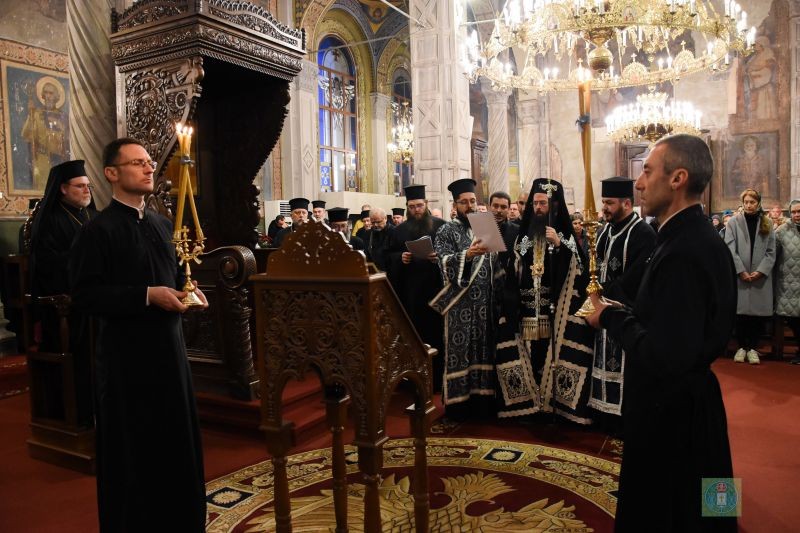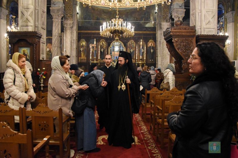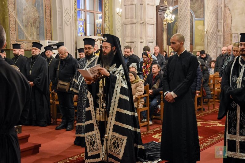 Митрополит Арсений заедно със свещенството и клиросните певци антифонно изпя великопостните химни, които се пеят на Великото повечерие. След което прочете третата част от Покайния канон на св. Андрей Критски, а смесеният хор с диригент г-н Илиян Маринов изпя ирмосите и припевите на Великия покаен канон.